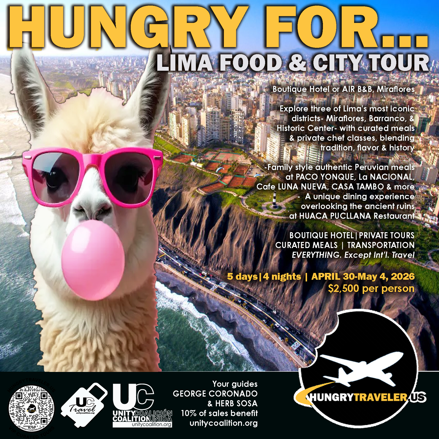 TO RESERVE TODAY: info@hungrytraveler.us or info@unitycoalition.org